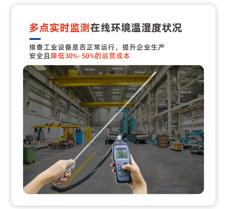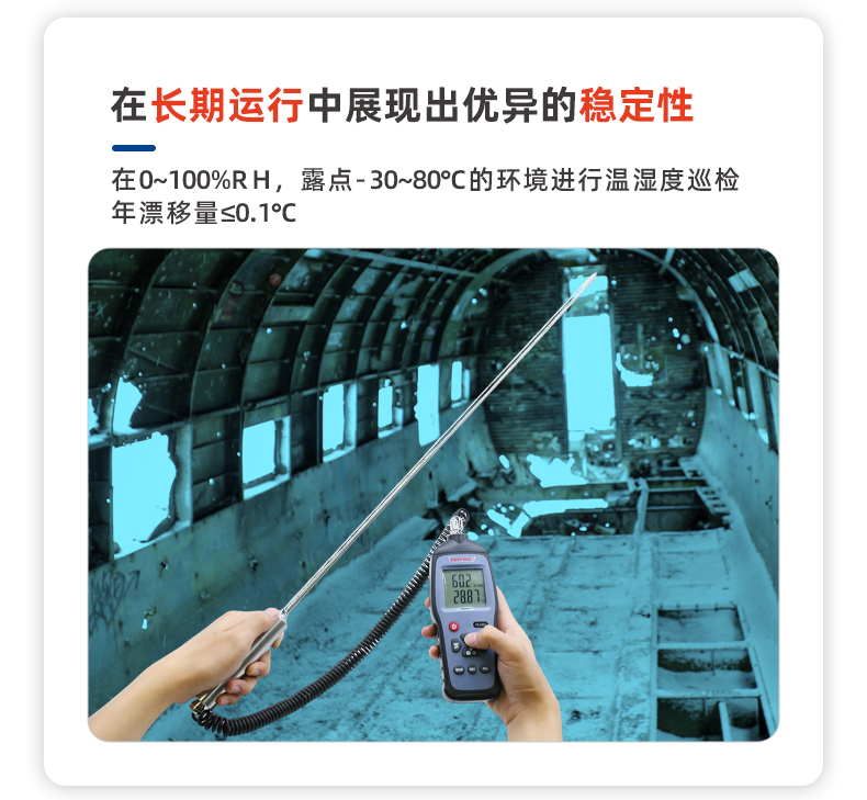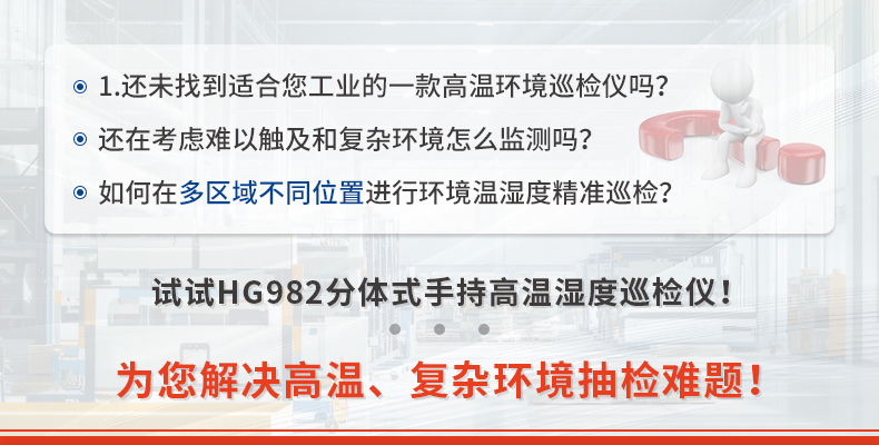 HG982手持分體式高溫溫濕度巡檢儀是一款專為高溫工業(yè)環(huán)境需求設(shè)計(jì)的高精度測(cè)量?jī)x器。在高溫環(huán)境80~120°C下測(cè)量表現(xiàn)出眾。在濕度范圍0-100%RH,且露點(diǎn)溫度-30~80°CTd的友好環(huán)境下使用,具備卓越的高精度、高準(zhǔn)確性、快速的數(shù)據(jù)采集與反饋能力,以及無(wú)與倫比的長(zhǎng)期穩(wěn)定性,在現(xiàn)場(chǎng)精準(zhǔn)測(cè)量方面表現(xiàn)出色,長(zhǎng)桿分體探頭對(duì)難以觸及或復(fù)雜的測(cè)量環(huán)境提供了多元化且安全的測(cè)量方式,備受工業(yè)用戶認(rèn)可的高溫濕度巡檢儀。