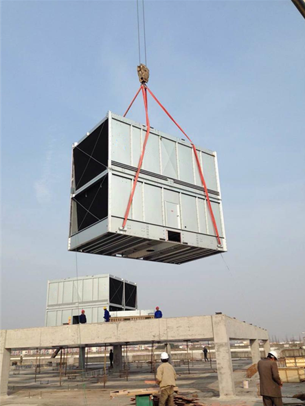 惠州東江環保橫流方形冷卻塔安裝 廣東特菱空調(http://m.tlzgjx.com)方形橫流式玻璃鋼冷卻塔結構特點: (1)擋板:玻璃鋼材質,表面光滑美觀,耐腐蝕,防老化。 (2)填料:改性聚氯