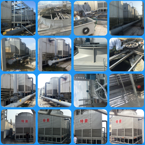惠州東江環保橫流方形冷卻塔安裝 廣東特菱空調(http://m.tlzgjx.com)方形橫流式玻璃鋼冷卻塔結構特點: (1)擋板:玻璃鋼材質,表面光滑美觀,耐腐蝕,防老化。 (2)填料:改性聚氯