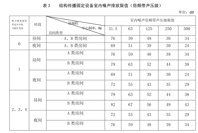4.2 結構傳播固定設備室內噪聲排放限值